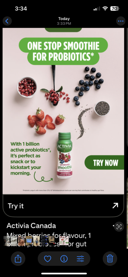 This is an advertisement made by the brand Activia, a dairy-based health food company that sells products that promote the importance of gut health. This advertisement specifically promotes…