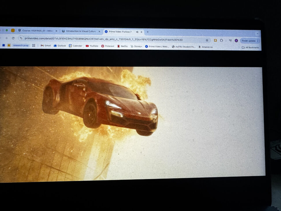 In the sequence from 1:17:52 to 1:18:52 there were around 65 edits per minute, showing that many shots are one or only two seconds long. When editing like this it creates more excitement and makes the scene more chaotic. This has become a prevalent pattern in action films making a spectacle plus fast editing have become a normative aesthetic strategy, used to maximize arousal and global market appeal(Cieślak, F. 2021). During this minute the point of view changes a lot, we can see inside the car which are close-ups on Dom and Brian, exterior shots showing the buildings and the stunts, camera behind the car, and a POV seeing what Dom and Brian see. Because of everything happening so fast the camera movements is highly dynamic and noticeable. It is design to make the viewer feel speed and danger. The camera does a tracking and following movement (moves with the car), push-ins (moves closer to the characters), sweeping and arcing movements (the camera swings when the car leaves the building), shaky movements inside the car (suggesting the impact the characters feel), and slow-motion emphasis (the camera appears to “float”). the editing in this sequence is obvious instead of seamless. It uses quick cuts, changing point of view, slow motion, and reaction shots to make things more exciting and tense instead of making them look natural. You can notice that you are seeing distinct shots that have been put together instead of one long moment.